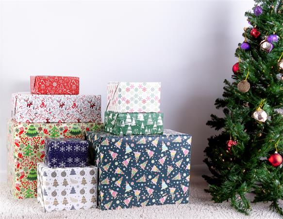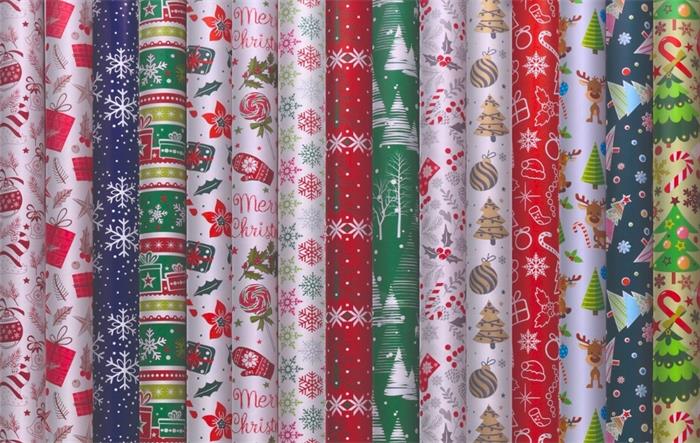 Baliaci papier, v hárkoch, 70x200 cm, 60 kotúčov, mix vianočných vzorov, VICTORIA PAPER