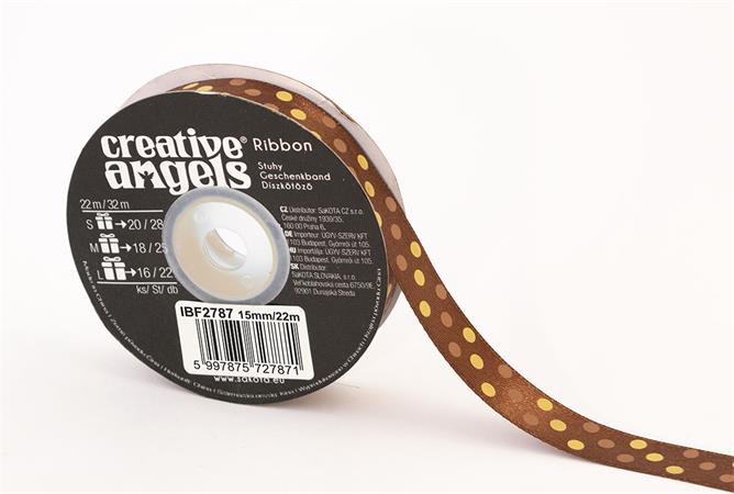 Saténová stuha, 15 mm x 22 m, bronzová, bodkovaná