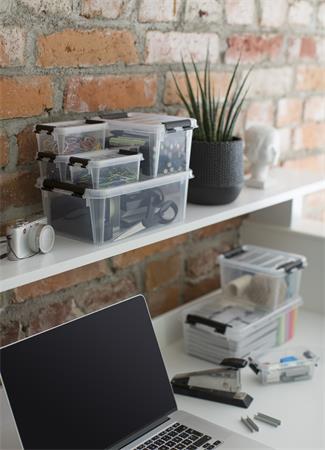 Hlavná stránkaKancelárske potrebyBalenie a odkladanieOdkladacie boxy, škatule a košíkyÚložný box, plastový, 1,5 l, čierne úchytky, SMARTSTORE "Classic 1,5", priehľadný