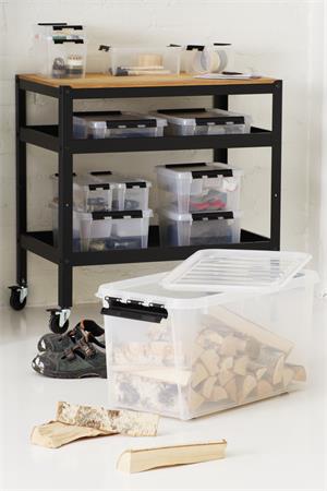 Úložný box, plastový, 14 l, čierne úchytky, SMARTSTORE "Classic 15", priehľadný