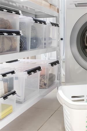 Hlavná stránkaKancelárske potrebyBalenie a odkladanieOdkladacie boxy, škatule a košíkyÚložný box, plastový, 14 l, čierne úchytky, SMARTSTORE "Classic 15", priehľadný