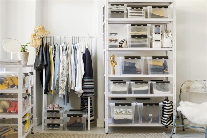 Úložný box, plastový, 47 l, čierne úchytky, SMARTSTORE "Classic 45", priehľadný