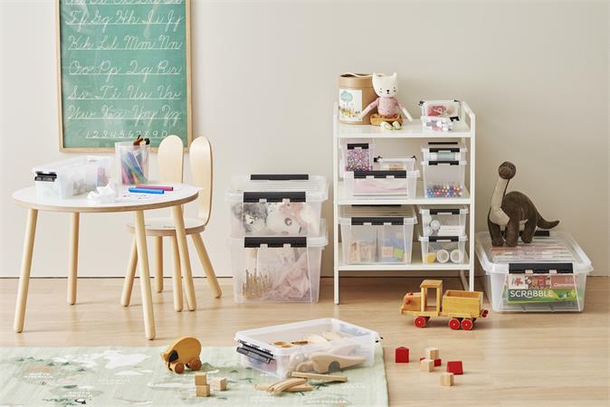 Hlavná stránkaKancelárske potrebyBalenie a odkladanieOdkladacie boxy, škatule a košíkyÚložný box, plastový, čierne úchytky, 4 priehradky, SMARTSTORE "Classic 4", priehľadný