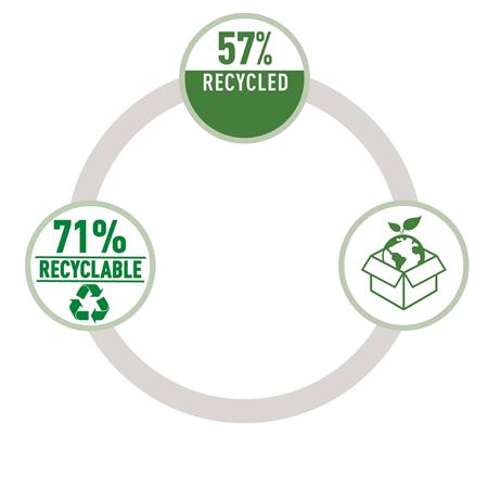 • Výrobok sa dá úplne rozobrať, 71 % recyklovateľný obsah. Balenie bez plastov