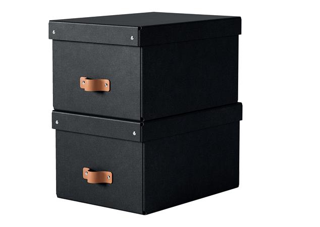 Štýlová kožená rukoväť uľahčuje vyberanie kartónových úložných boxov z políc, úložných či šatníkov.
