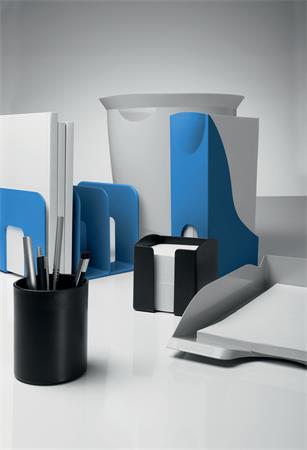 Klasický držiak na papierové bločky vyrobený z recyklovaného plastu.