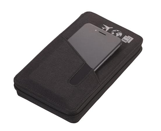 Box na dokumenty, na cestovanie, s RFID ochranou, s guľôčkovým perom, TROIKA "Cargosafe", tmavosivá