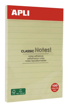 Samolepiaci bloček, linajkový, 100x150 mm, 100 listov, APLI, žltý