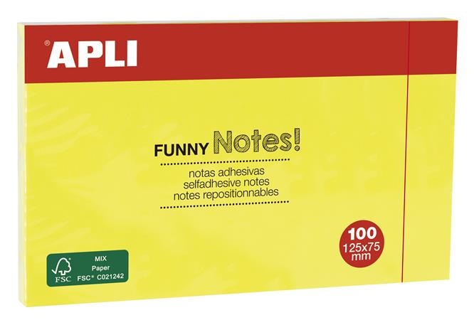 Samolepiaci blok, 125x75 mm, 100 listov, APLI, žltá
