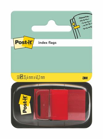 Záložka, plastová, 50 listov, 25x43 mm, 3M POSTIT, červená