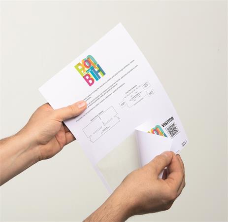 Menovky na hárku A4: jednoducho ho odlepte, následne zlepte predný list so zadným - s EURO výrezom, ktorý umožňuje napr. kombinácia s textilnou páskou - ideálne riešenie na vylepenie vizitiek návštev, napr. na veľtrhy a iné akcie - pozvánku alebo program vieme vytlačiť na papierový hárok (laserovou tlačiarňou) a následne poslať vopred spolu s integrovanou menovkou - matná fólia zaisťuje stabilitu a robí menovku odolnou proti roztrhnutiu, takže nie je potrebné žiadne ďalšie puzdro