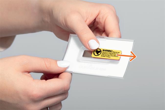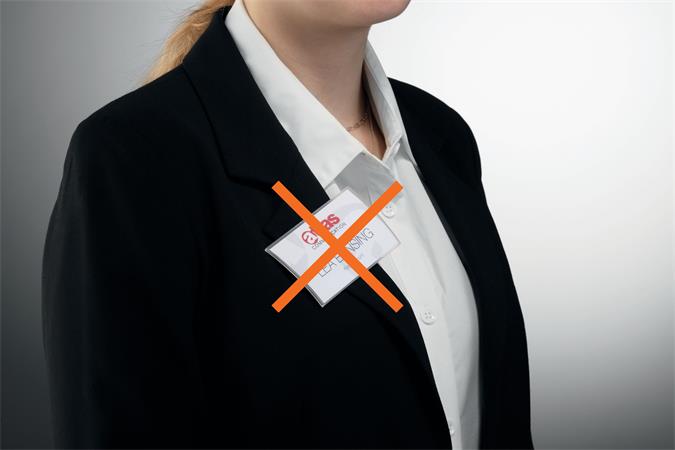 - špecifické zapínanie, ktoré zabraňuje otáčaniu, skĺznutiu alebo uvoľneniu menovky pri nosení