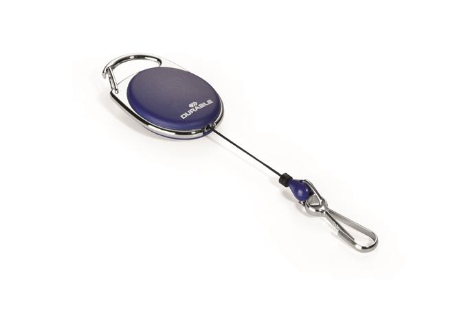 Hlavná stránkaKancelárske potrebyKancelárske doplnkyVisačky, menovkyVýsuvný kotúč, s možnosťou vysunutia, so svorkou, DURABLE "Style", tmavomodrý