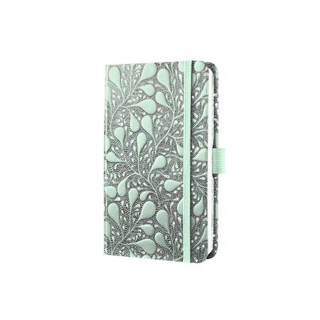 -s označovacou páskou -zapínanie na gumičku -na boku držiak na pero -vnútorná archivačná priehradka a držiak na vizitky -s tabuľkou veľkostí -80 g/m2 papiera -12 listov na poznámky, ktoré sa dajú ľahko vytrhnúť vďaka perforácii -rozmery: 95x150x16 mm -jazyk: DE/ENG/FR/NL