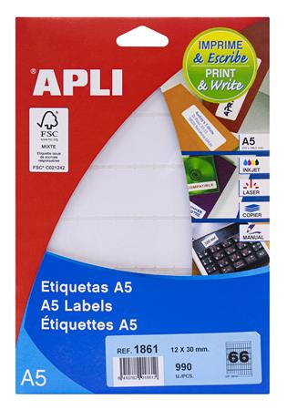 Etikety, 12x30 mm, zaoblené rohy, na liste formátu A5, APLI, 990 etikiet/bal