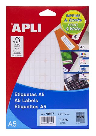 Etikety, 8x12 mm, zaoblené rohy, na liste formátu A5, APLI, 3375 etikiet/bal