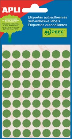 Etikety, okrúhle, priemer: 10 mm, ručne popisovateľné, farebné, APLI, zelené, 315 etikiet/bal