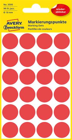Etikety, okrúhle, priemer: 18 mm, odstrániteľné, AVERY ZWECKFORM, červené, 96 etikiet/bal