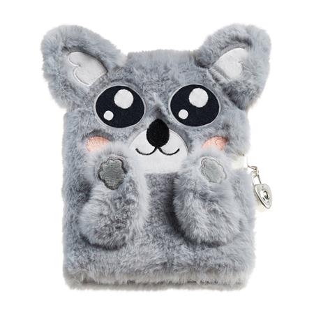 Chlpatý denník s visiacim zámkom "Koala", APLI Back2Fun: 80 listov, linajkový, zaoblené rohy, papier 80 g/m2,  predná obálka aj zadná obálka z kartónu potiahnutého chlpatým polyestrom, uzamykateľný, rozmery denníka: 131 x 182 x 20 mm