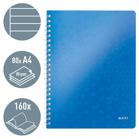 Špirálový zošit, A4, linajkový, 80 listov, LEITZ "Wow", modrý