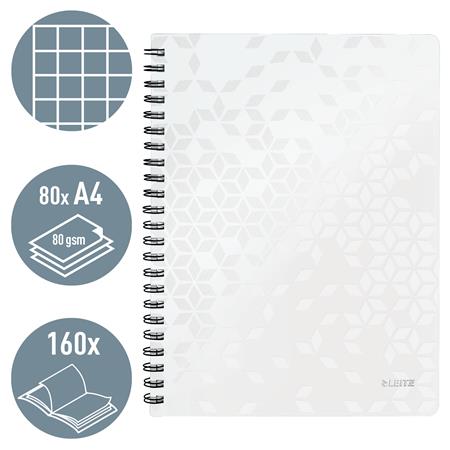 Špirálový zošit, A4, štvorčekový, 80 listov, LEITZ "Wow", biela