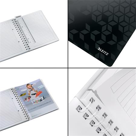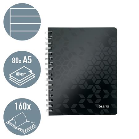 Špirálový zošit, A5, linajkový, 80 listov, LEITZ "Wow", čierna