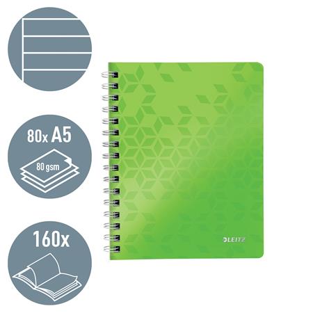 Špirálový zošit, A5, linajkový, 80 listov, LEITZ "Wow", zelená