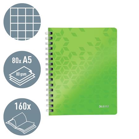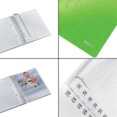Špirálový zošit, A5, štvorčekový, 80 listov, LEITZ "Wow", zelená