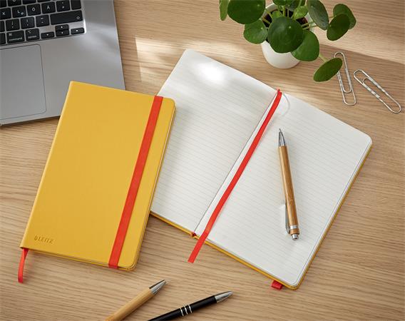 Záznamová kniha, A5, linajková, 80 listov, tvrdá obálka, LEITZ "Cosy Soft Touch", teplá žltá