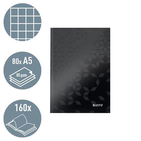Záznamová kniha, A5, štvorčeková, 80 listov, tvrdá obálka, LEITZ "Wow", čierna