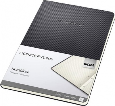 Zošit, exkluzívny, A5, linajkový, 60 listov, tvrdá obálka, SIGEL "Conceptum", čierna