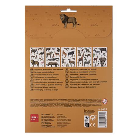 Nálepky, znova použiteľné, 50 ks, APLI Kids "Stickers", zvieratká zo savany