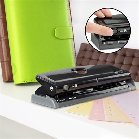 Praktický doplnok na každý stôl! - ručná dierovačka so šiestimi otvormi - kovový kryt, kovová konštrukcia - nastaviteľná vzdialenosť otvorov: áno - kapacita listov: 9 listov (80 gsm) - priemer otvoru: 5,5 mm - použiteľné pre: vreckové, osobné, kompaktné, tenké, Filofax mMni , veľkosti A5, A6 - ľahko vyprázdniteľná nádoba na konfety - popisovateľný štítok - záruka: 15 rokov
