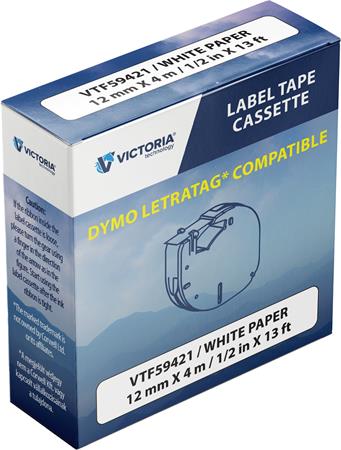 Páska do štítkovača, papier, 12 mm x 4 m, kompatibilta: DYMO Letratag, VICTORIA TECHNOLOGY, biela