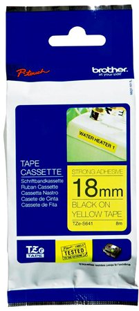 Páska do štítkovača, silné prilepenie, 18 mm x 8 m, BROTHER,  žltá-čierna