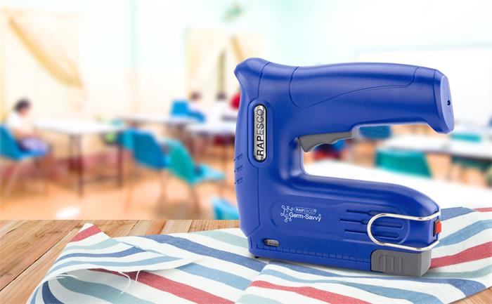Sponkovacia pištoľ, bezdrôtová, elektrická, USB, RAPESCO Germ-Savvy "T12-USB", modrá