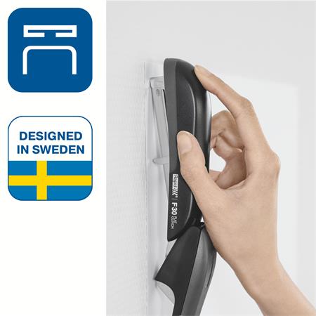 Ergonomická zošívačka s polovičným plnením spiniek a silnou oceľovou konštrukciou pre presné zošívanie. Vybavená technológiou plochého zošívania, ktorá šetrí miesto na ukladanie až o 30 %. Ideálne pre veľké aj malé kancelárie.