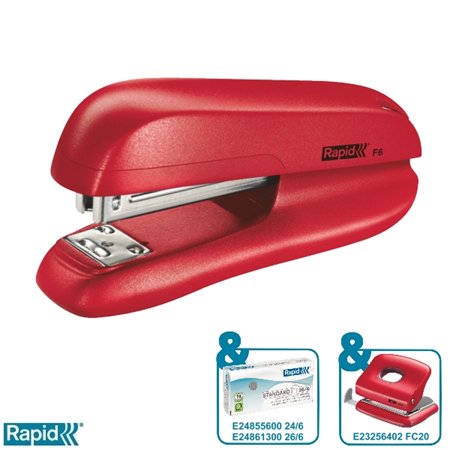Zošívačka24/6, 26/6, 20 listov, RAPID "F6", červená