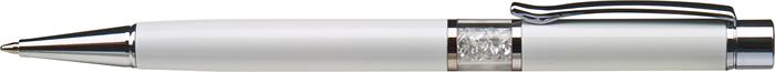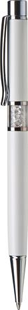 Guľôčkové pero, Crystals from SWAROVSKI®, biele, s bielymi krištáľmi v strede tela, 14cm