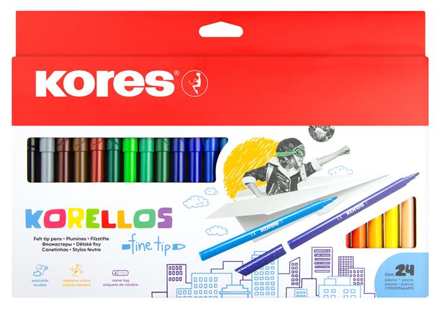 Fixky, sada, vyprateľné, KORES "Korellos", 24 rôznych farieb