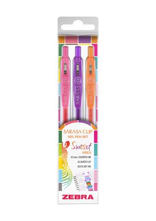 Sada gélových pier, 0,25 mm, s tlačidlom, ZEBRA „Sarasa Clip Sunset“, 3 rôzne farby