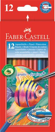 Akvarelové ceruzky, sada, šesťhranné, so štetcom, FABER-CASTELL, 12 rôznych farieb