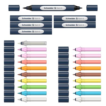 Popisovač, obojstranný, 27-kusová sada, SCHNEIDER „Paint-It 040 Twin marker Set 2”, 10 rôznych farieb
