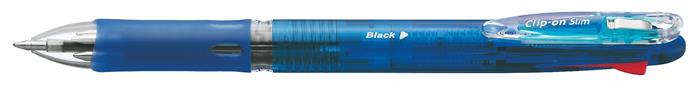 Guľôčkové pero, 0,24 mm, stláčací mechanizmus, 4 farby, ZEBRA "Clip-on Slim 4C", modrá