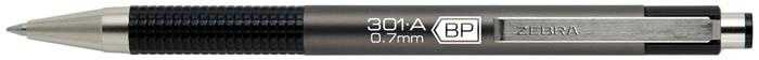 Guľôčkové pero, 0,24 mm, stláčací mechanizmus, farba tela: antracitová, ZEBRA "F301 A", modré