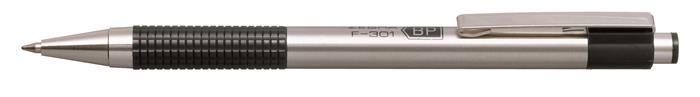 Telo guľôčkového pera F-301 vyrobené z nehrdzavejúcej ocele je zárukou štýlovosti a trvanlivosti. Vrúbkovaný úchop zaručuje pohodlné a stabilné písanie. Farba tela je čierna, farba atramentu modrá. Priemer guľôčky: 0,7 mm, hrúbka písma0,24 mm. Typ náplne: F.