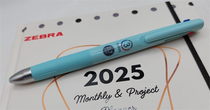 Guľôčkové pero, 0,24 mm, stláčací mechanizmus, trojfarebné, ZEBRA "Blen 3C", modrozelené telo