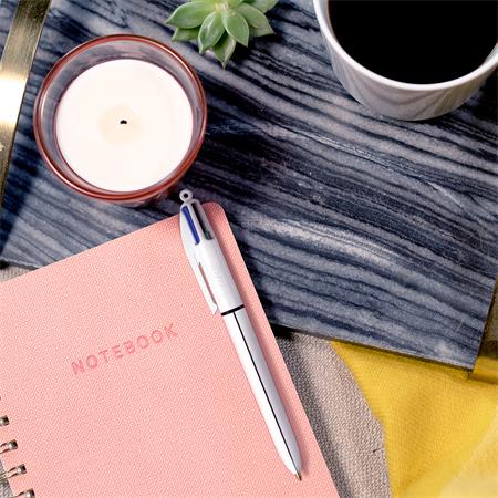 Guľôčkové pero, 0,32 mm, stláčací mechanizmus, 4 farby, BIC "4 Colours Shine"