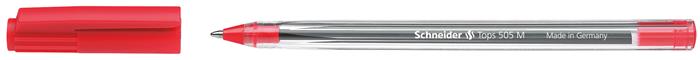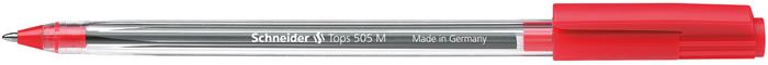Guľôčkové pero, 0,5 mm, s vrchnákom, SCHNEIDER "Tops 505 M", červené