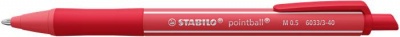 Guľôčkové pero, 0,5 mm, stláčací mechanizmus, STABILO "Pointball Colorful", červené